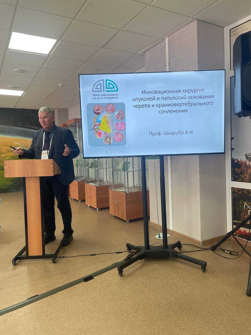 В ходе работы секции «Нейроонкология» заведующий кафедрой сочетанных и комбинированных повреждений, профессор кафедры нейрохирургии РМАНПО Гиа Гарегинович Шагинян и профессор кафедры нейрохирургии Алексей Николаевич Шкарубо представили инновационные подходы к оперативному лечению злокачественных новообразований краниофациальной локализации и срединных структур головного мозга и основания черепа.