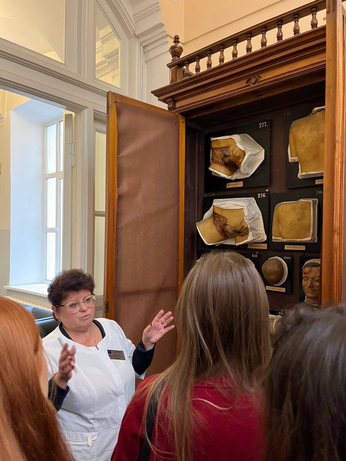Большое впечатление произвело посещение Музея муляжей клиники кожных болезней имени А.И. Рахманова, где были представлены редкие экспонаты, наглядно демонстрирующие эволюцию представлений о дерматологических заболеваниях. Знакомство с историческими артефактами позволило ординаторам ощутить связь времен и преемственность поколений врачей.
